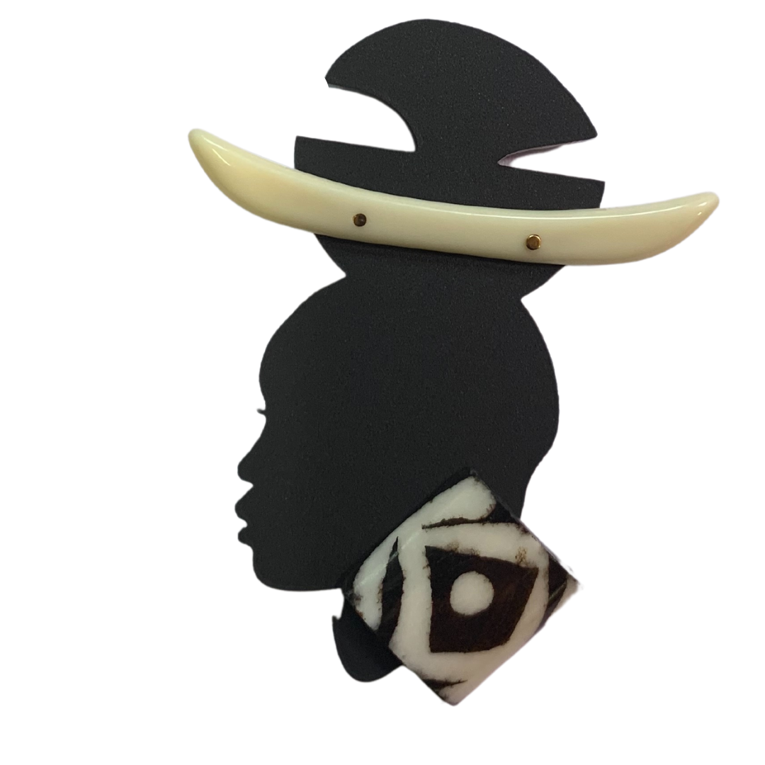 Queen Mother is created with “Authentic African Mudbone”. Original Queen Mother design by Takara and lasercut in her Chicago studio. Crown adorned with faux ivory.